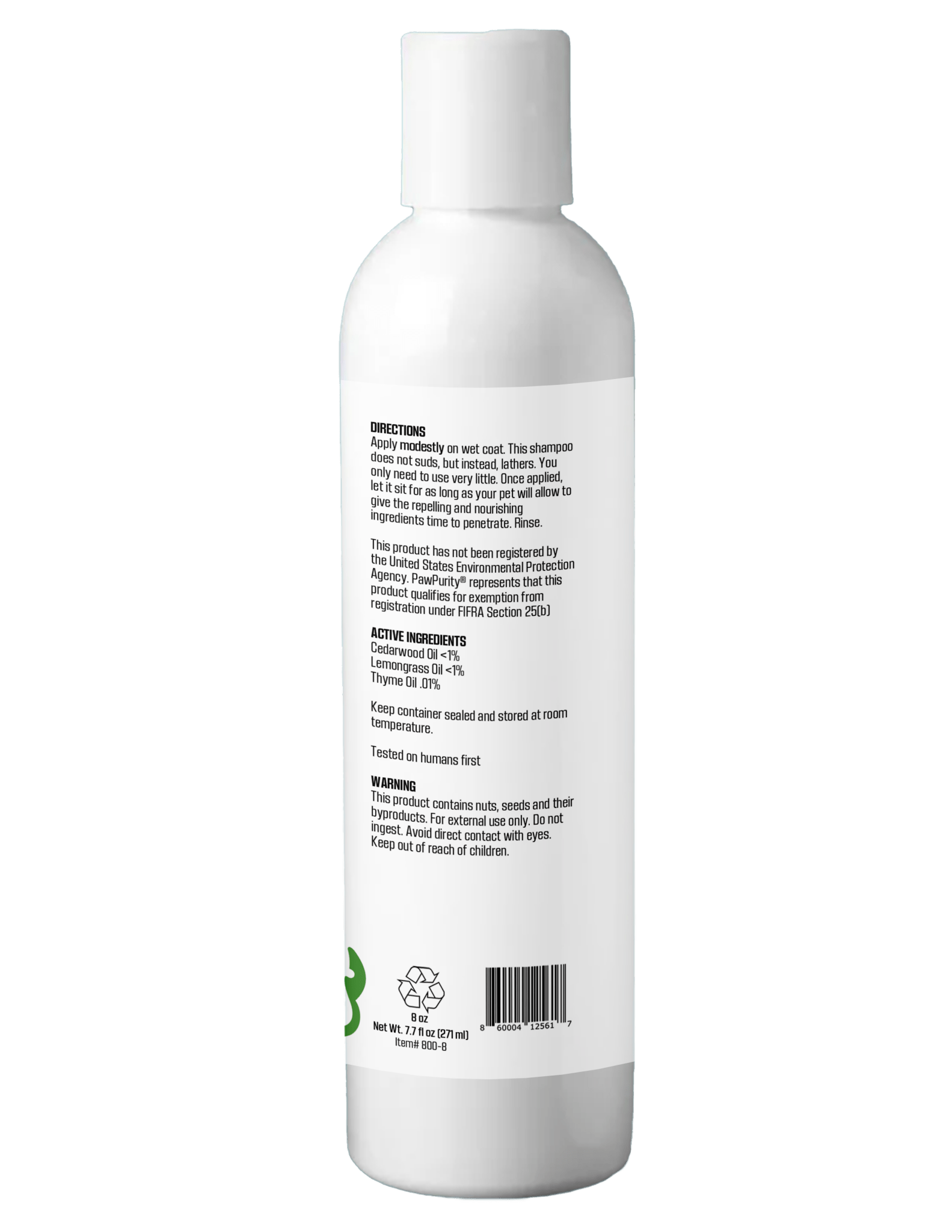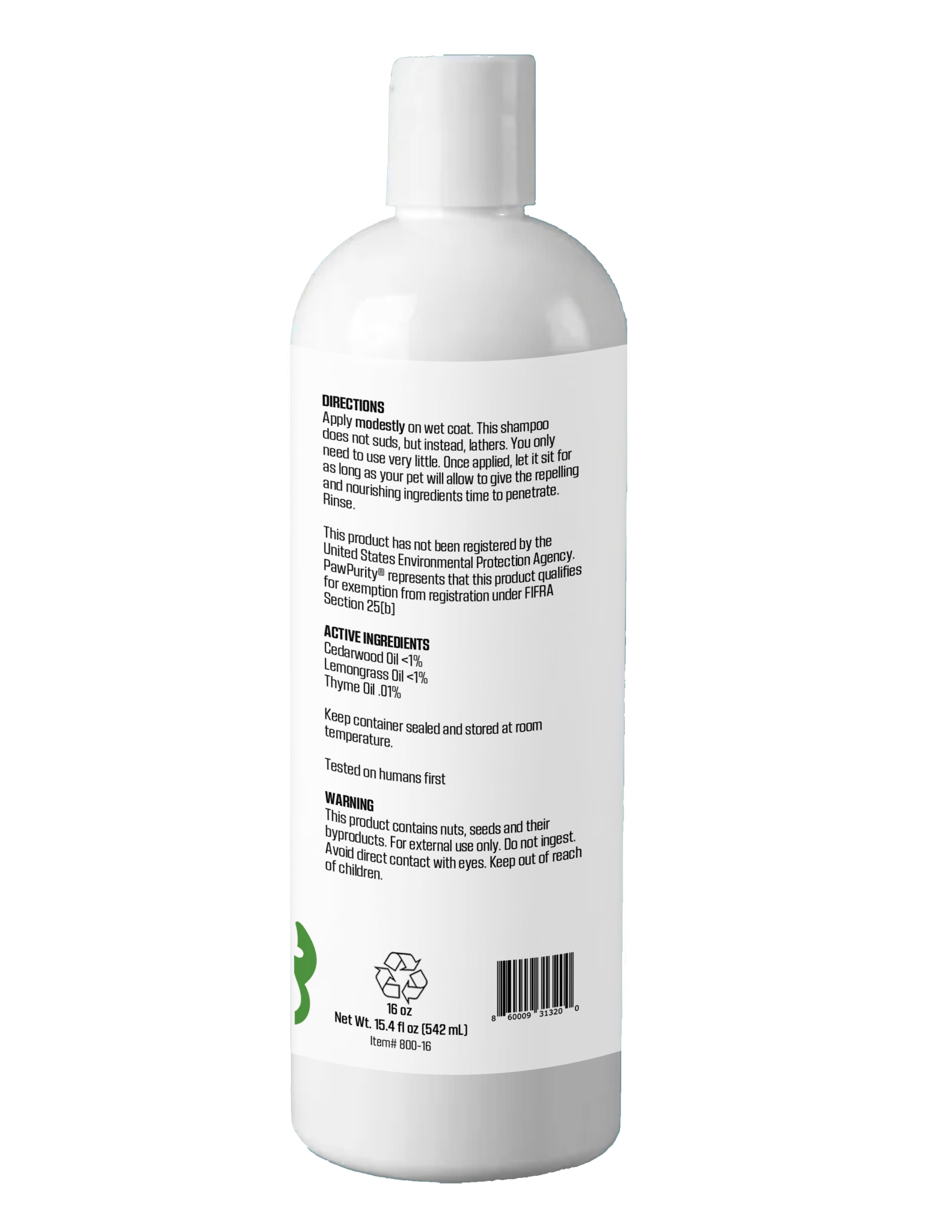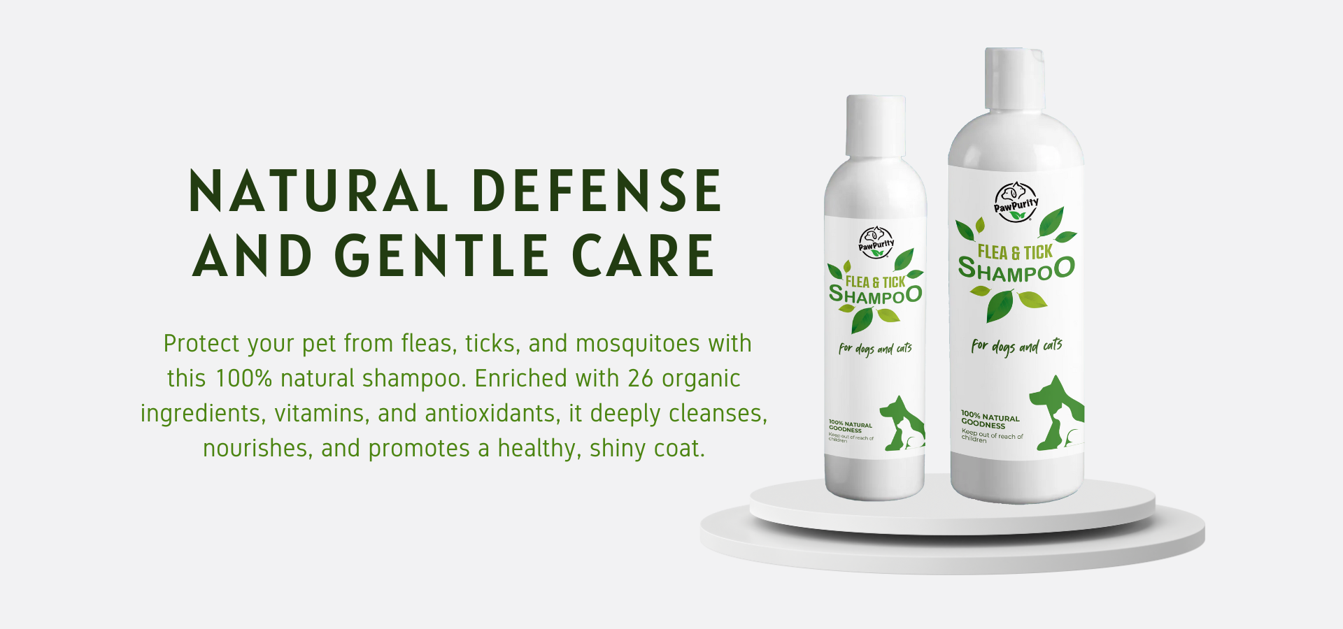PawPurity's Flea & Tick Shampoo is formulated with 100% natural ingredients, effectively repelling fleas, ticks, mosquitoes, and no-see-ums without harsh chemicals.