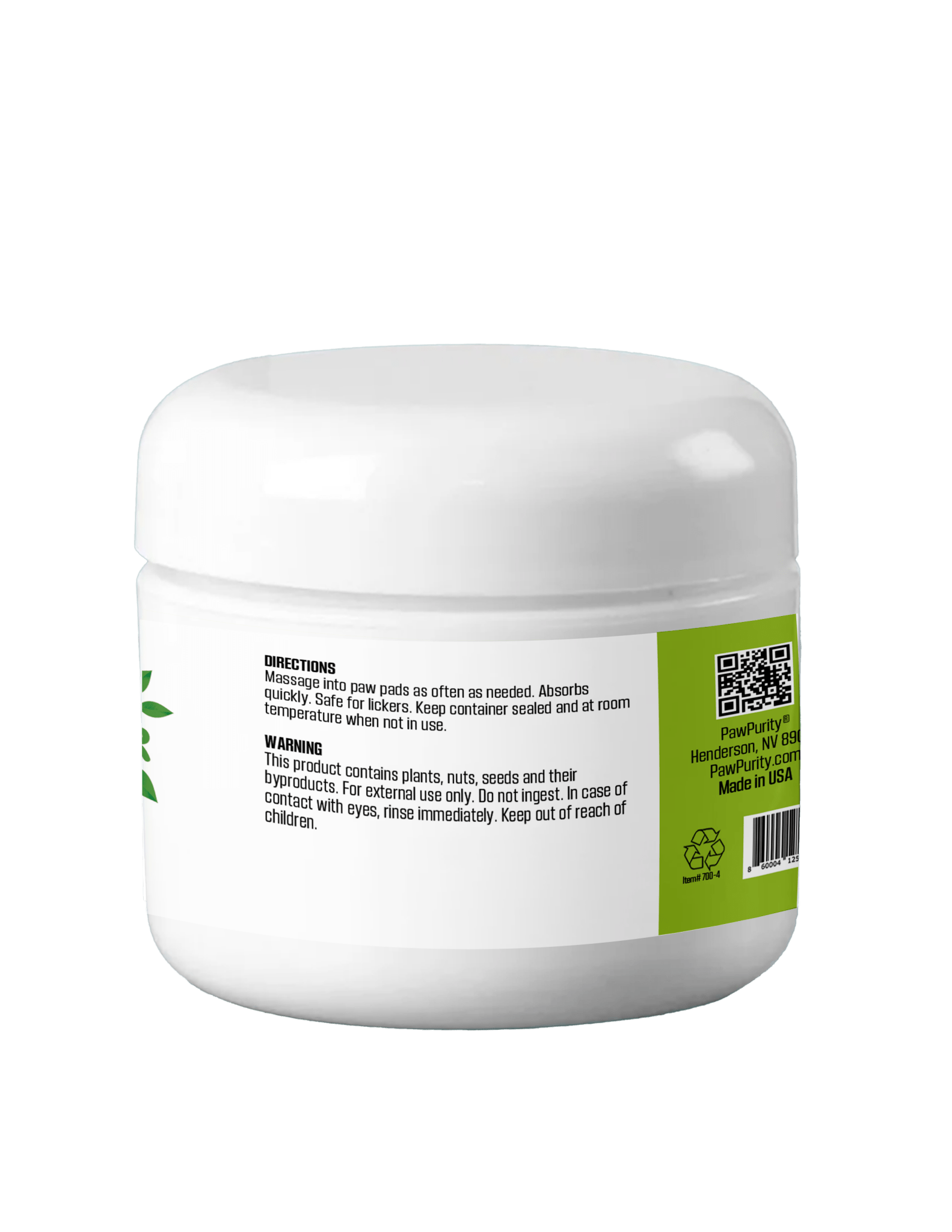 Apply PawPurity’s paw balm to your dog’s pads and nails daily. It may be applied as often as you like. The ingredients are 100% organic and safe for dogs. Since we only use natural preservatives, please make sure to keep the container sealed and in a cool place.