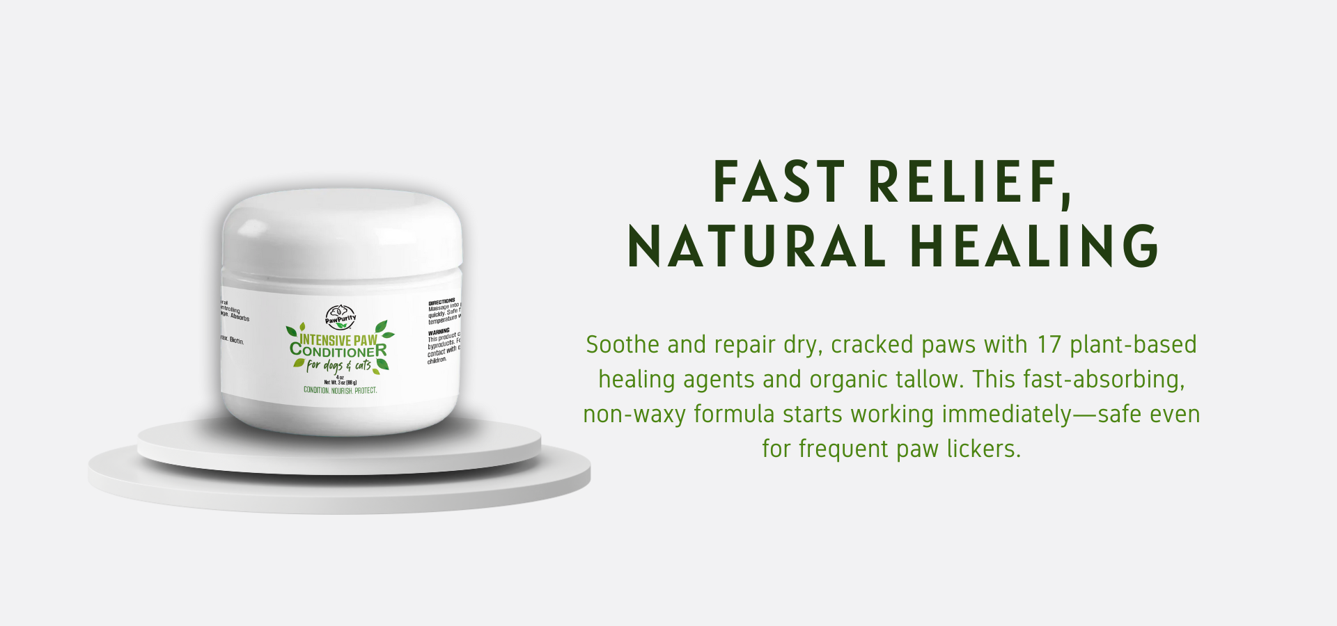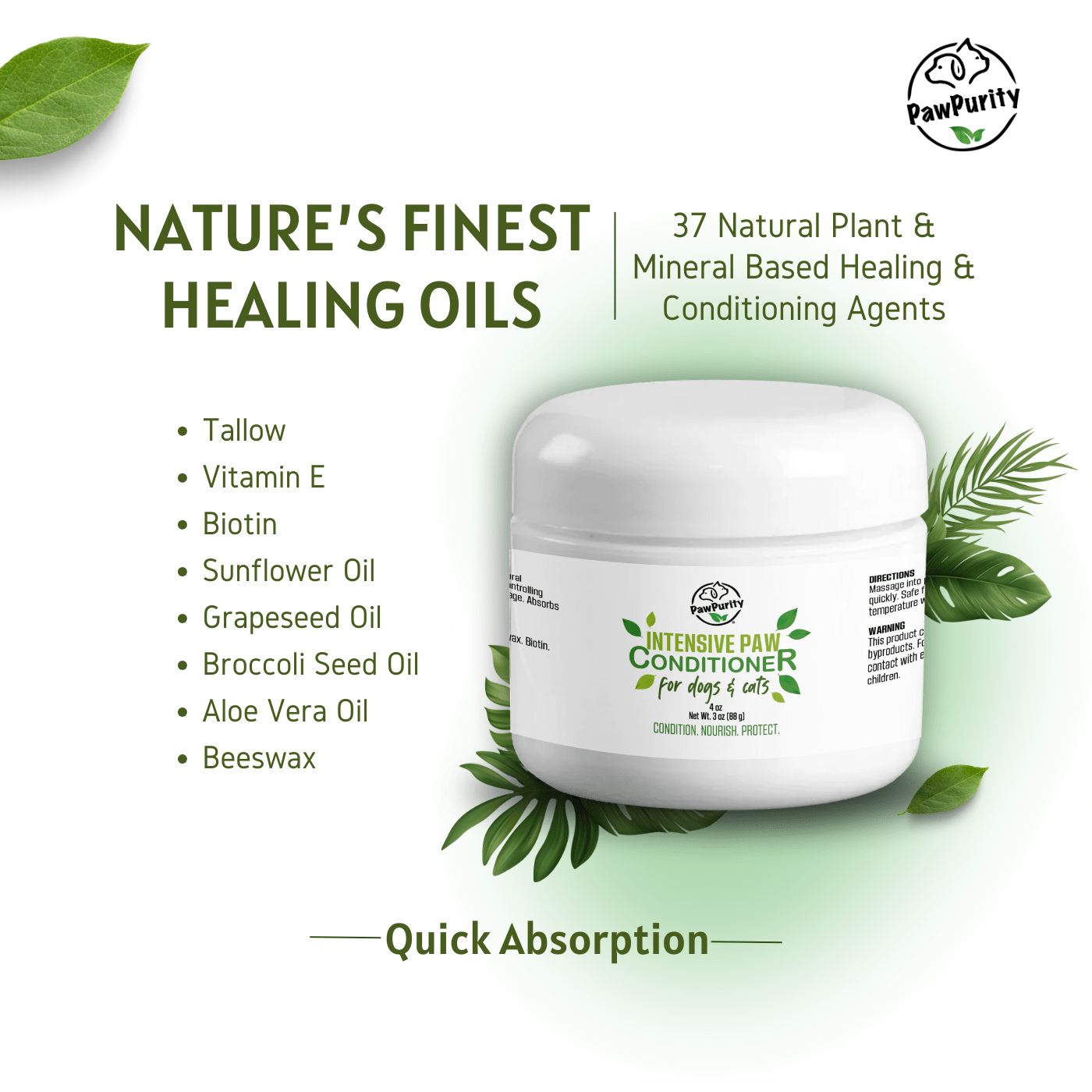 PawPurity's Healing Paw Conditioner treats dry, cracked, or injured paw pads and nails, promoting quick and natural healing.